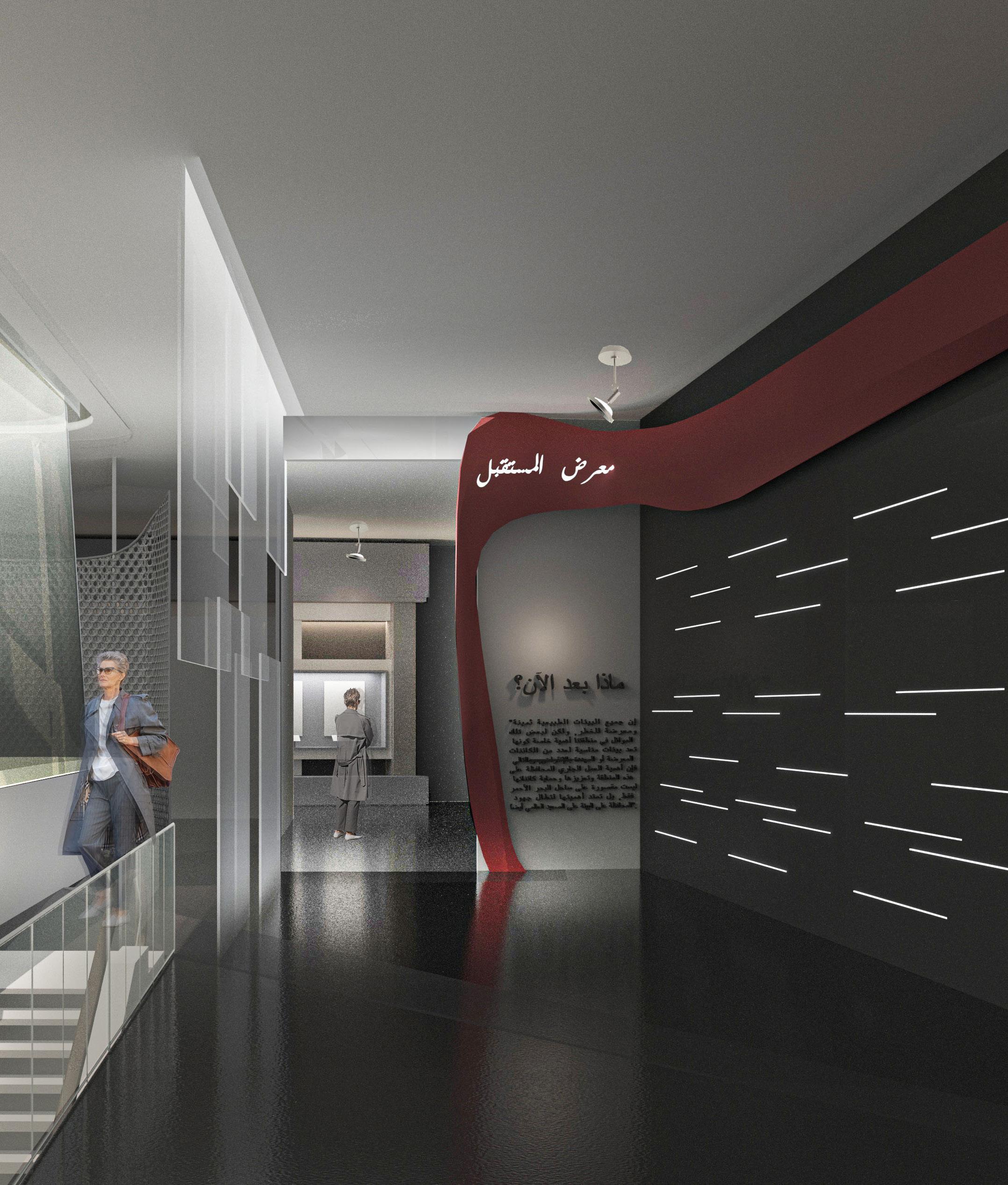 The project designed by using the newest approach of designing exhibitions, It targets human instincts and all senses to lead the user to complete his journey between exhibitions with the greatest impact on his awareness about the nature, and attract his attention in a thoughtful ways by the design lines, light and dark colored sections, in addition to the fact that the exhibition is interactive.