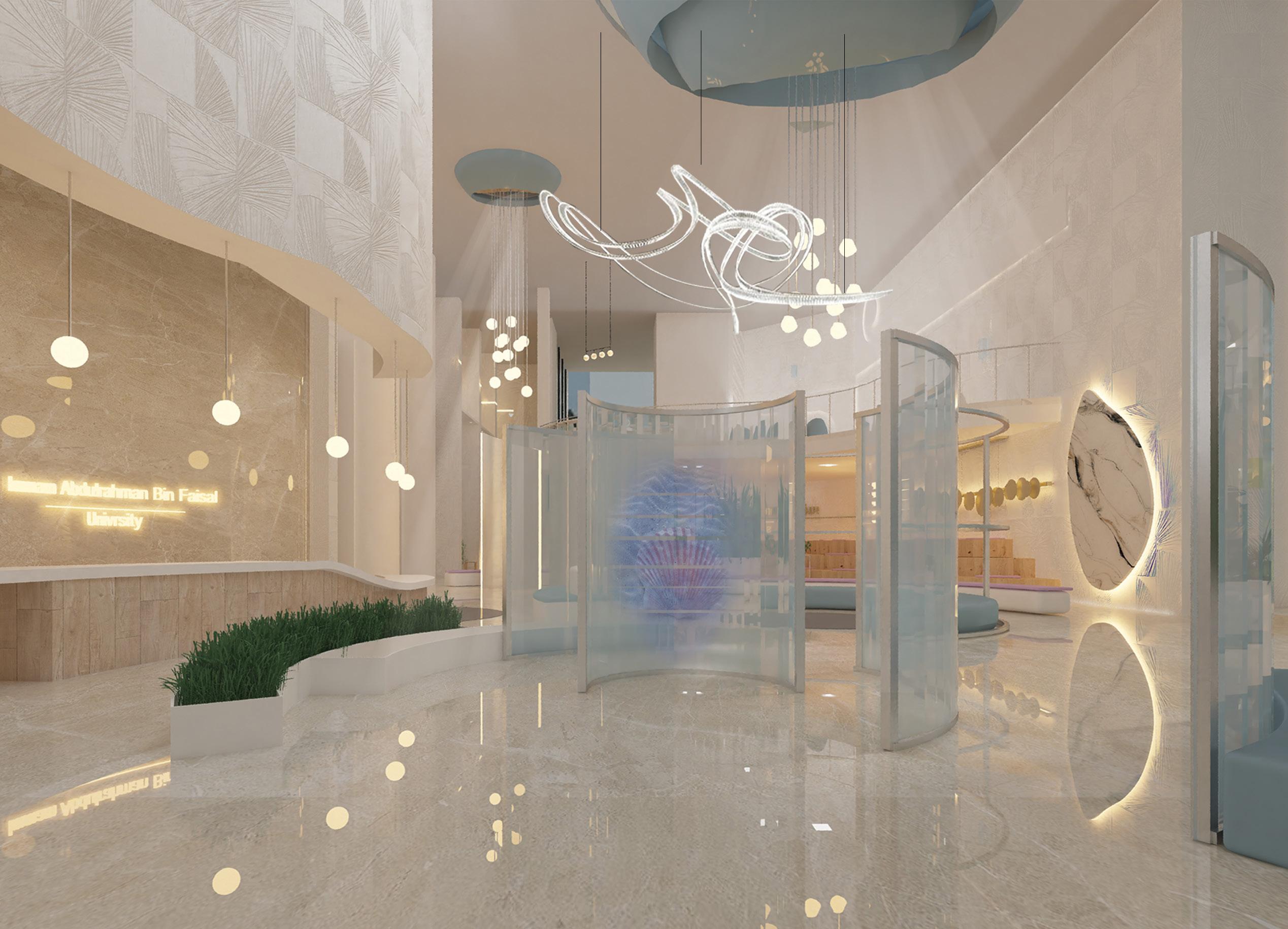 As how pearls are valuable for Dammam city (where the project is), the spaces designedin a way makes the user feel as valuable as pearls by following their common charactirastics.