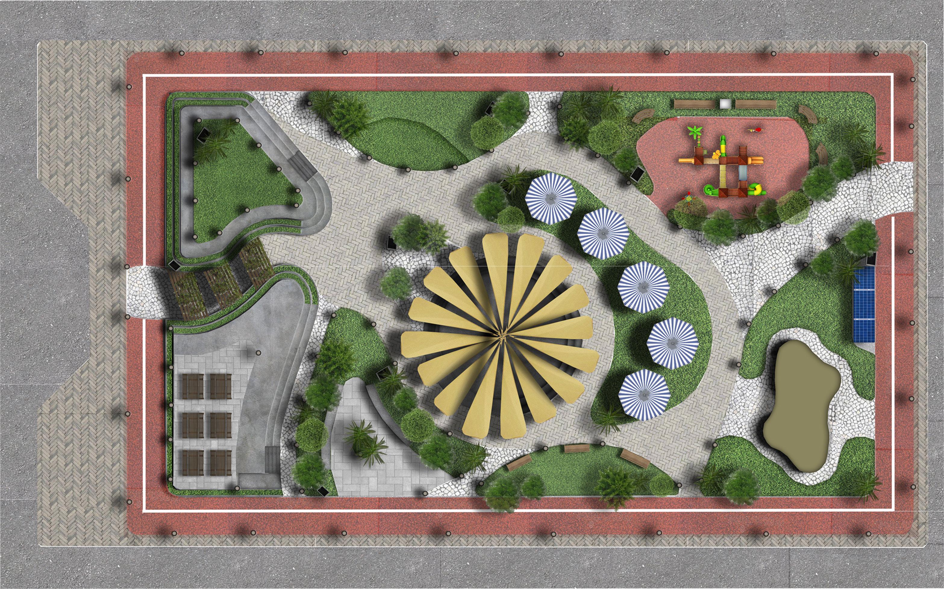 As the garden is the heart of the neighborhood and is the center of modern city planning, This garden will be designed as if its center is the heart and all the elements return to it. And that will be in an unrestricted manner and free style to simulate nature as much as possible and create an entertaining and comfortable atmosphere for the residents of the neighborhood. the project Honored by them with the university.