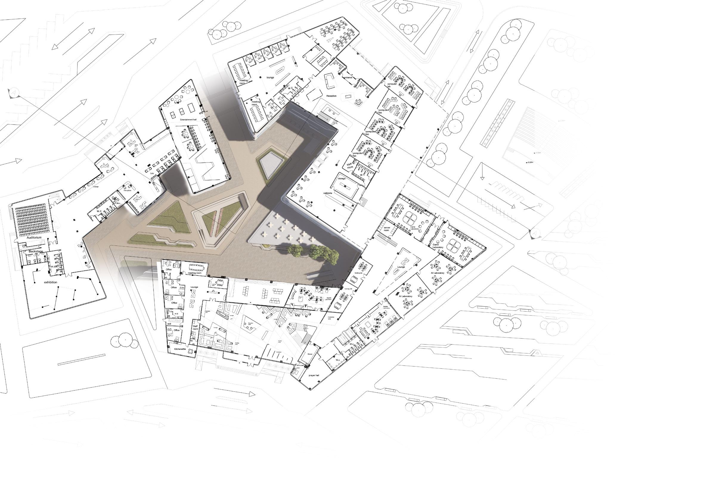 The project design inspired from the fact that Artificial intelligence is a stimulation of human intelligence, and both are centered on Transmission of signals. so, the college designed in a way that motivate the innovation and enhance knowledge exchange.