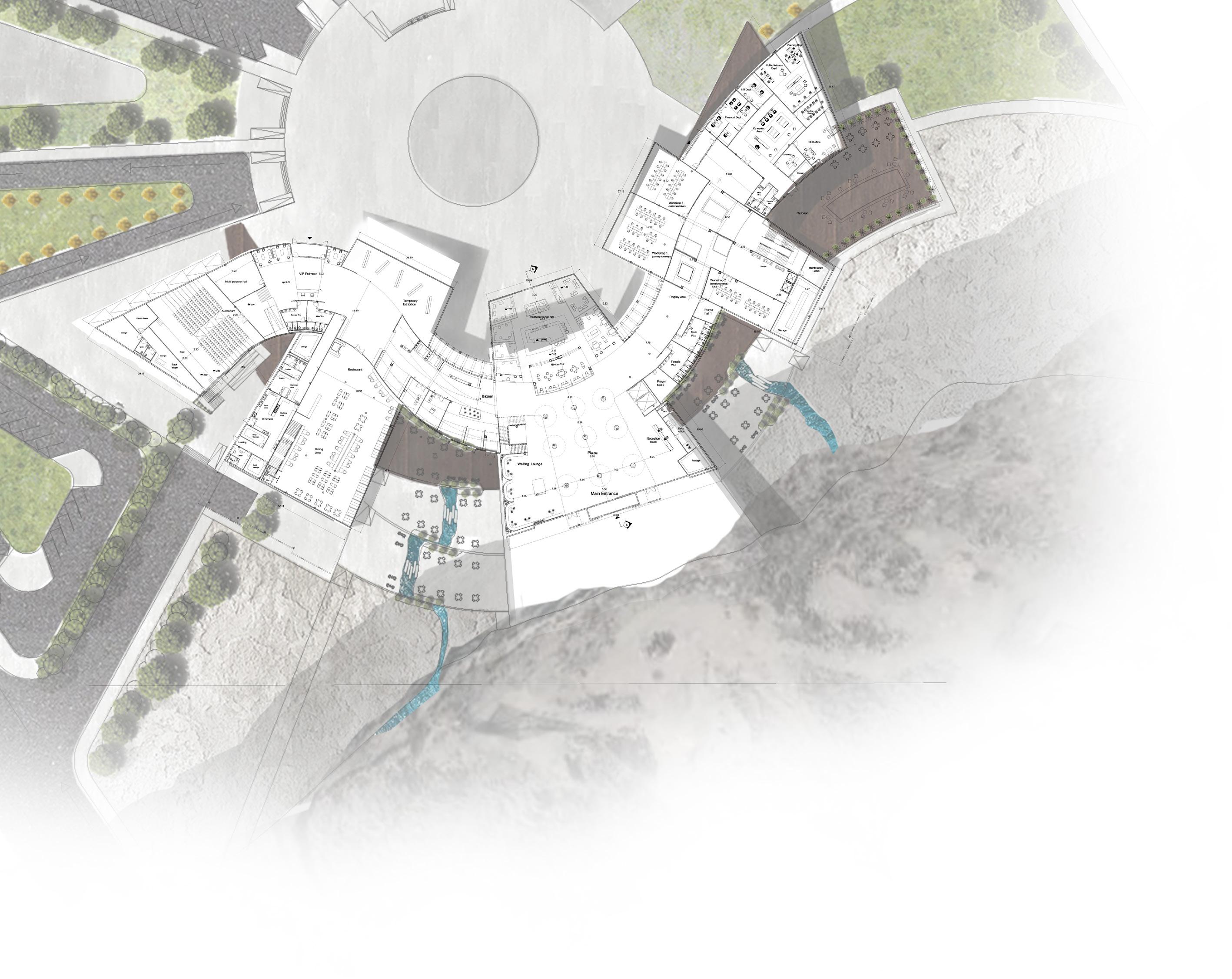 The mass inspired from the mangrove leaves to be part of the site and blend with nature reflects the goal of the project where it aims to blend people with nature in one balanced ecosysyem.