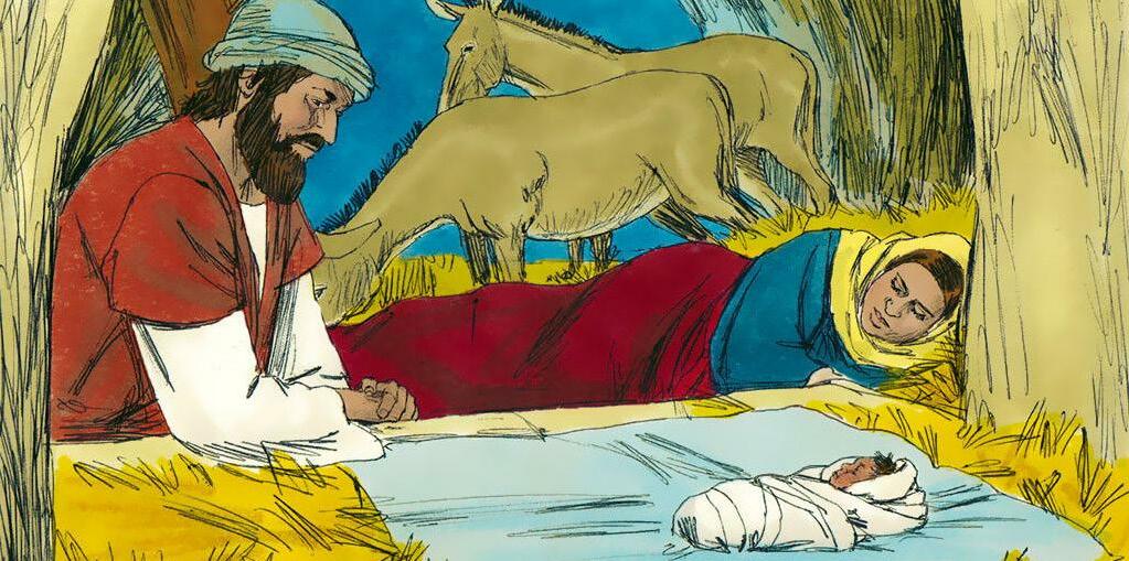1. Sampai di Betlehem, Yusuf dan Maria tidak mendapat kamar untuk mereka menginap. Tetapi akhirnya mereka mendapat tempat yang biasa dipakai untuk hewan. Yesus lahir di tempat itu dan dibaringkan di palungan.