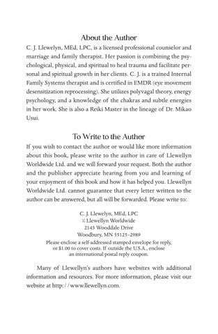 Many of Llewellyn’s authors have websites with additional information and resources. For more information, please visit our website at http://www.llewellyn.com.