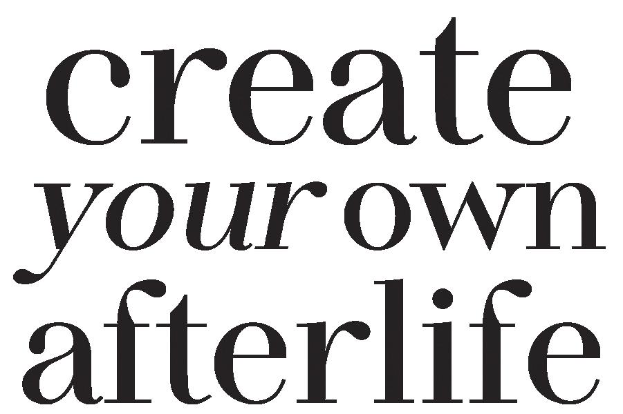 If you need help during your journey, please visit www .createyourownafterlife.com for support, questions, bonus materials, and ideas. You are also welcome to join a group of like-minded individuals who are exploring these same profound questions via the “Create Your Own Afterlife Friends” Facebook Group.3 Everyone there is seeking to understand life and death, and the journey between them, in a more meaningful way. I hope you will join us if this is something that appeals to you.
