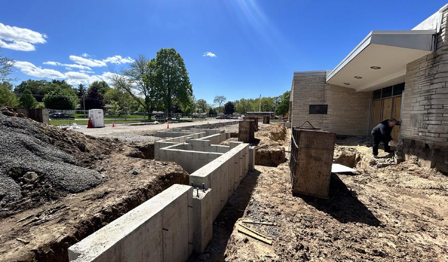 On April 8, we broke ground to expand and renovate our cafeteria and front entry. When it’s finished, you’ll see a more prominent main entrance and front lawn monument, a remodeled & bigger cafeteria and front office, and renovated lobby restrooms. The whole project is expected to be complete by December.