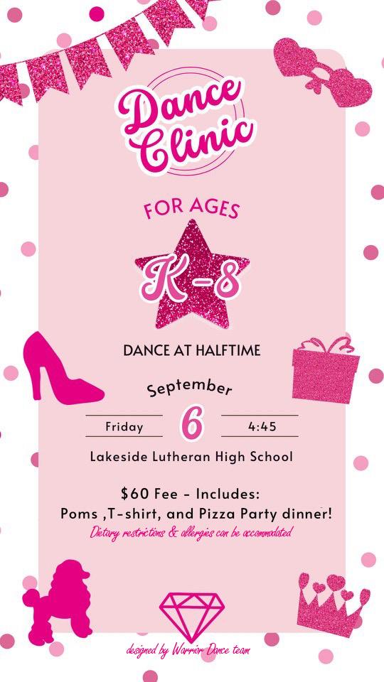 Barbie Dance Clinic: Friday, Sept. 6, 2024 at Lakeside Lutheran High School