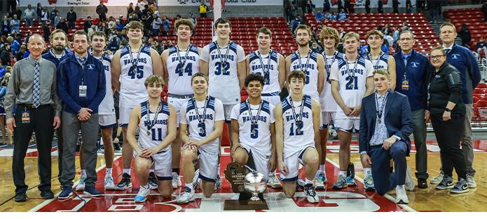 Our Warrior boys won the state semi-final, our first win at the Kohl Center! Then they brought home the silver ball as the D3 State Boys Basketball Runner-Up.