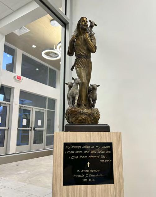 Senior Alex Isham and TechEd teacher, Forever Warrior Caleb Kasper ‘98, created the new time capsule. Other Forever Warriors added messages with Myrna’s, including current Regents Chair, Gordy Schmidt (‘81) and Student Body President Farah Stuebs (‘25) as well as Principal Pastor Don Schultz.