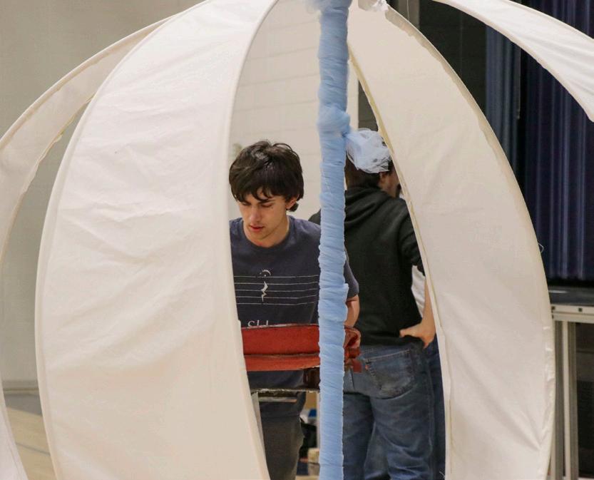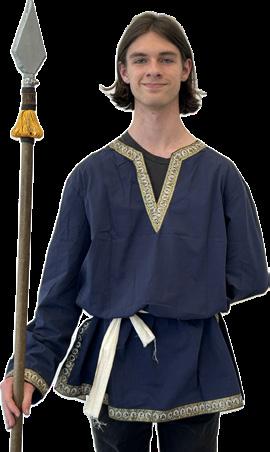 I have heavily relied on student efforts—of Nadia Henriquez for choreography, Clara Grow, who organized ALL the costumes among SO many other things, and Kaelynn Gulczynski and Katie Abel, who tackled props and stage management. Senior John Loest made all the spears and worked on the clock.