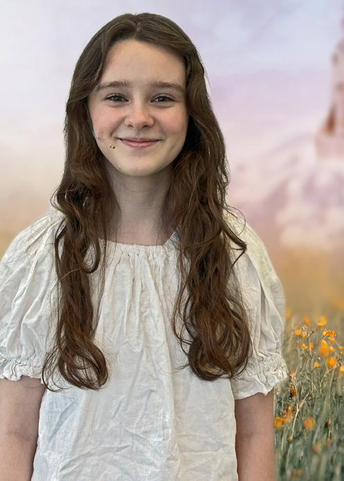 I am blessed to be performing in my ninth show. Previous theater credits include Mr. Toad’s Mad Adventures, Peter Pan Jr., A Mother Goose Fairy Tale, Junie B. Jones Jr.,TheSoundofMusic,ChannelingGrimm, Rudolph The Red Nosed Reindeer Jr. and The Wizard of Oz. I am a bit shy, but have a giant imagination. Being involved in theater has really helped me come out of my shell. I have made some really great friends and memories along the way. I have learned so much from the directors and cast. Outside of theater, I swim year-round on a club swim team, go WAT. I also enjoy art, music, the outdoors, hiking, travel, and hanging out with my friends. I want to thank Kristina and Mr. Springborn for all their support and this opportunity.