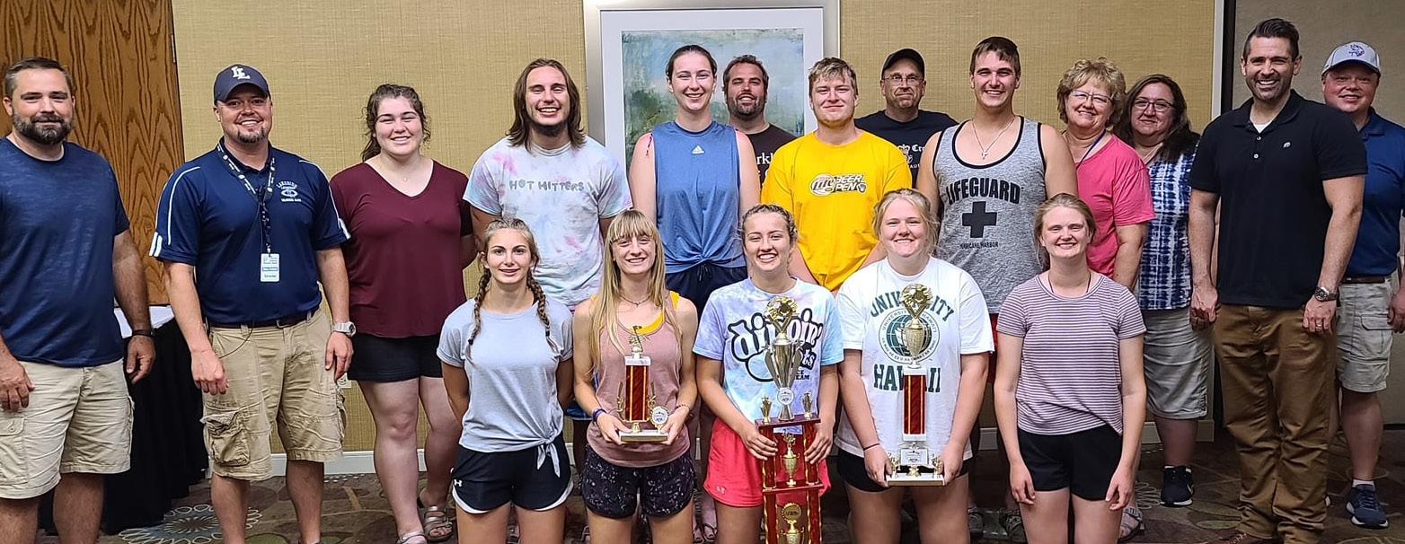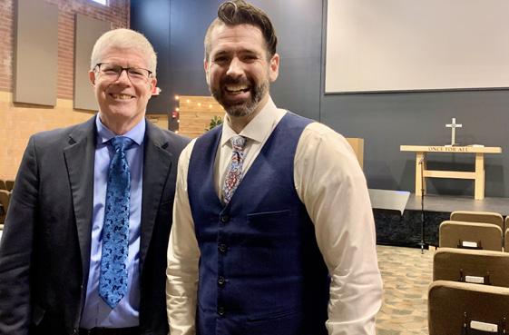 Dustin Blumer ‘00 is pastor at home mission Amazing Love Lutheran in Frankfort, Ill., a southwestern suburb of Chicago (amazinglove.org). Pictured above with A Cappella Director Jim Buege, Dustin’s congregation was the first of four WELS church stops on the 2022 choir spring break tour, where they were blessed to share beautiful music and hear a humbling and encouraging message of law & gospel from Pastor Blumer. And that’s not all! Last summer’s band trip saw parades in St. Louis and Glen Ellyn, Ill. Between parades—a former Warrior tuba player himself—Dustin was “thrilled to be asked” to lead worship for the band in a special service just for them. Pastor Blumer (2nd from right, bottom pic) is with a bunch of Forever Warriors, including band chaperone Caleb Kasper ‘97 (leftmost) and Director Glen Pufahl ‘00, a slew of 2021 alum who were graduate marchers, and chaperones Laura (Zarnstorff ‘78) Loppnow, Michelle (Borchardt ‘87) Preskar and Casey Pufahl ‘96.