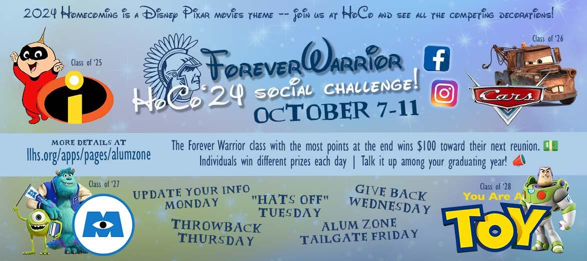 Alum, we want to hear about your personal/family/work announcements! Your fellow Forever Warriors want to celebrate, to pray, to encourage you as you go through life events. Update us online at llhs.org/apps/form/alumupdate or email updateus@llhs.org