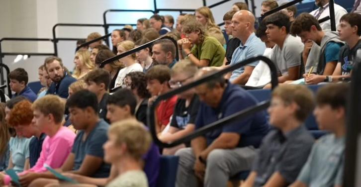 The freshmen gather together in their first of many assemblies being part of the Warrior family.
