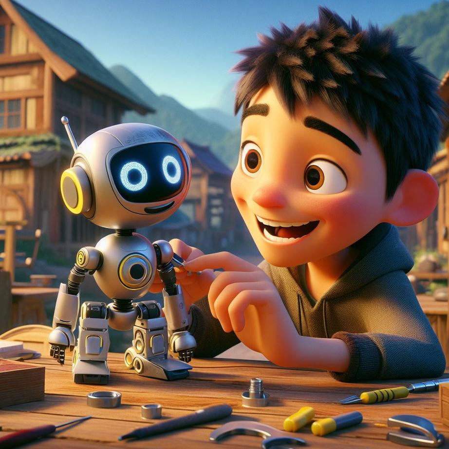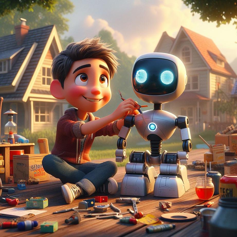 En una hermosa mañana de primavera, un joven inventor llamado Tim se despertó con una idea emocionante. Había estado pensando en un robot que pudiera ayudar a alegrar a las personas con su sonrisa.