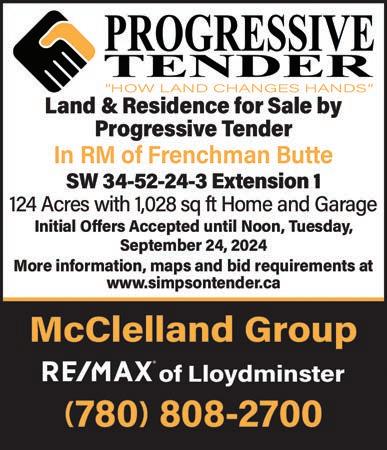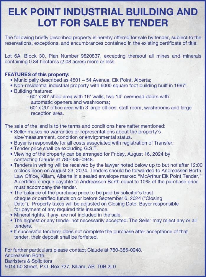 Tender close August 9, 2024 at 4:00 p.m. Highest, or any tender, will not necessarily be accepted.
