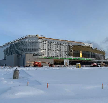 November marked the completion of insulating all the low roofs and starting to insulate the community rink roof. The glass contractor began preparing to install glass. Painters substantially completed walls in dressing room areas surrounding the event area.