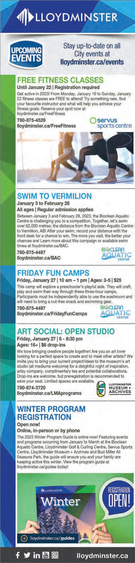The City of Lloydminster would like to inform residents and facility patrons that public swimming/ lane swimming will be unavailable at the Bioclean Aquatic Centre for a portion of the day this Saturday to accommodate the Lloydminster Riptides Frosty Freeze Invitational.