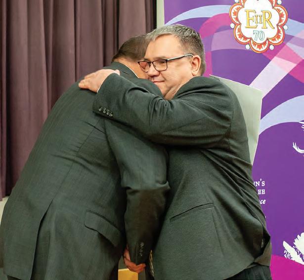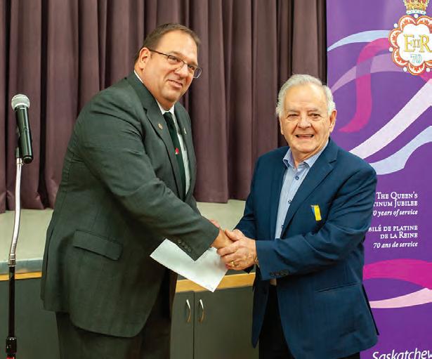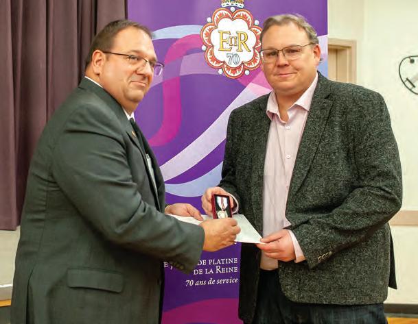 MLA Colleen Young presents Shaun Donald with the Queen Elizabeth II Platinum Jubilee Medal on Sunday afternoon at the Legacy Centre.