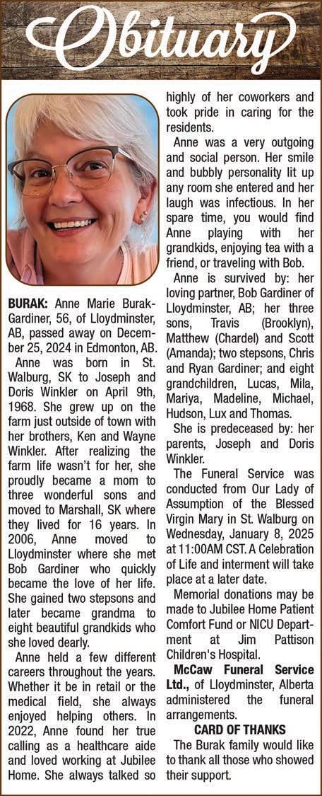 Some notable bylaws coming up for completion in the early part of 2025 include the land use bylaw which is anticipated to be completed in Q2. The land use bylaw was previously under review in midOctober when a surprise motion by Lloydminster Mayor Gerald Aalbers put a hold on the process.