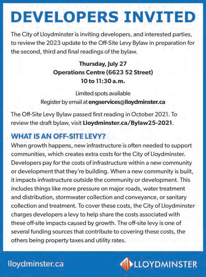 Anyone who has not received their 2023 tax notice is asked to contact Assessment and Taxation immediately by calling 780-875-6184 Ext. 2124 or emailing taxes@lloydminster.ca to request a copy.