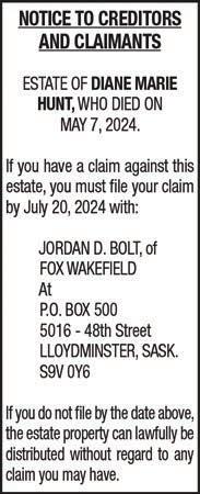 The family would like to thank McCaw Funeral Service, Joel McCaw, Pastor Lyle Berg, the members of City Church (for the lunch) and the doctors and nurses at Lloydminster Hospital for their kindness and care.