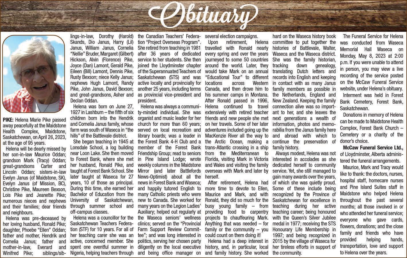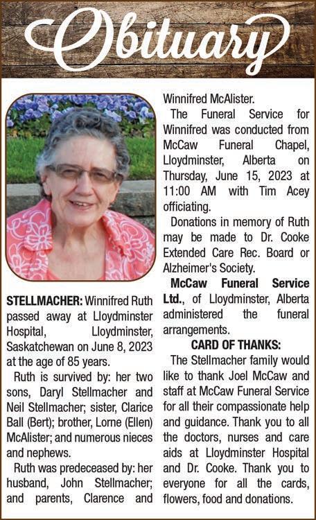 46 MERIDIAN SOURCE Thursday, June 22, 2023 3” wide version 3.75” wide version Squeeze Advertise Province-wide with a combined circulation over 750,000 for only... Value Ad Network Alberta Weekly Newspapers Association toll free 1-800-282-6903 x225 email classifieds@awna.com or visit your community newspaper the MOST out of your advertising dollars Squeeze What is lovely never dies, but passes into other loveliness. - Thomas Bailey Aldrich To remember a loved one or share their memories, place a memoriam or obituary in the Meridian Source by calling... 306-825-5111