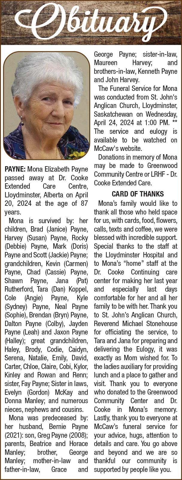 McCaw Funeral Service Ltd., of Lloydminster, Alberta administered the funeral arrangements.
