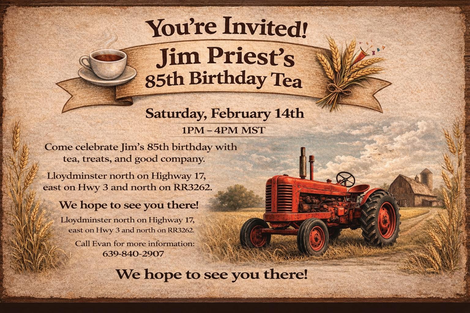 Walter was held at the WLS Stockade Convention Centre, Lloydminster, SK on January 29, 2026. Donations in memory of Walter may be made to the Heart and Stroke Foundation or donor's charity of choice. McCaw Funeral Service of Lloydminster, Alberta administered the funeral arrangements.