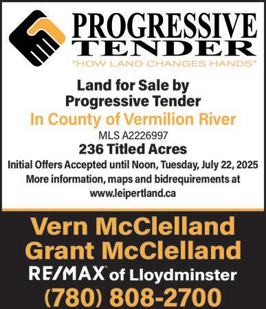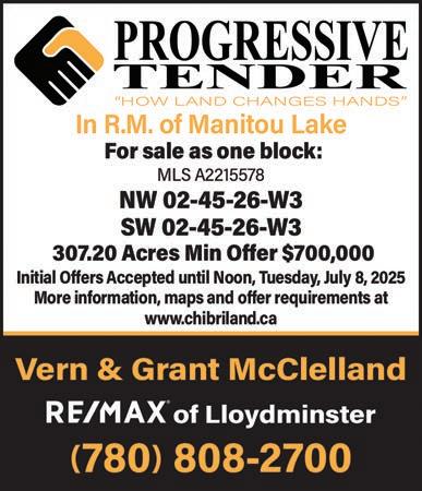 Farmland Tender (closing June 27). ½ section of good quality farmland with 290 ac. cult. RM of Leask #464. Call Gerald Muller, C&C Realty, 306-570-7743.
