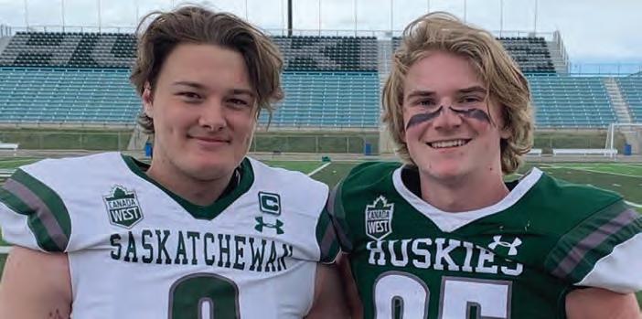 Xander Pierce (left) and Ryden Gratton, Canadian junior champions with the Saskatoon Hilltops, also played together in Lloydminster minor football and in high school with the Lloydminster Comprehensive Barons. Submitted photo