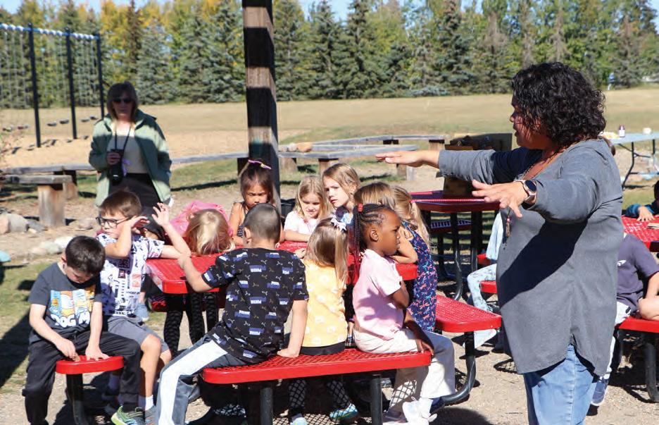 On Sept. 22, Lloydminster Catholic District School Board (LCSD) Indigenous Programming Co-ordinator Cynthia Young spent the afternoon sharing teachings with students as part of a fall celebration. The event mixed stories, questions and fresh bannock baked that morning.
