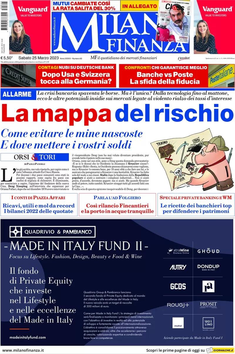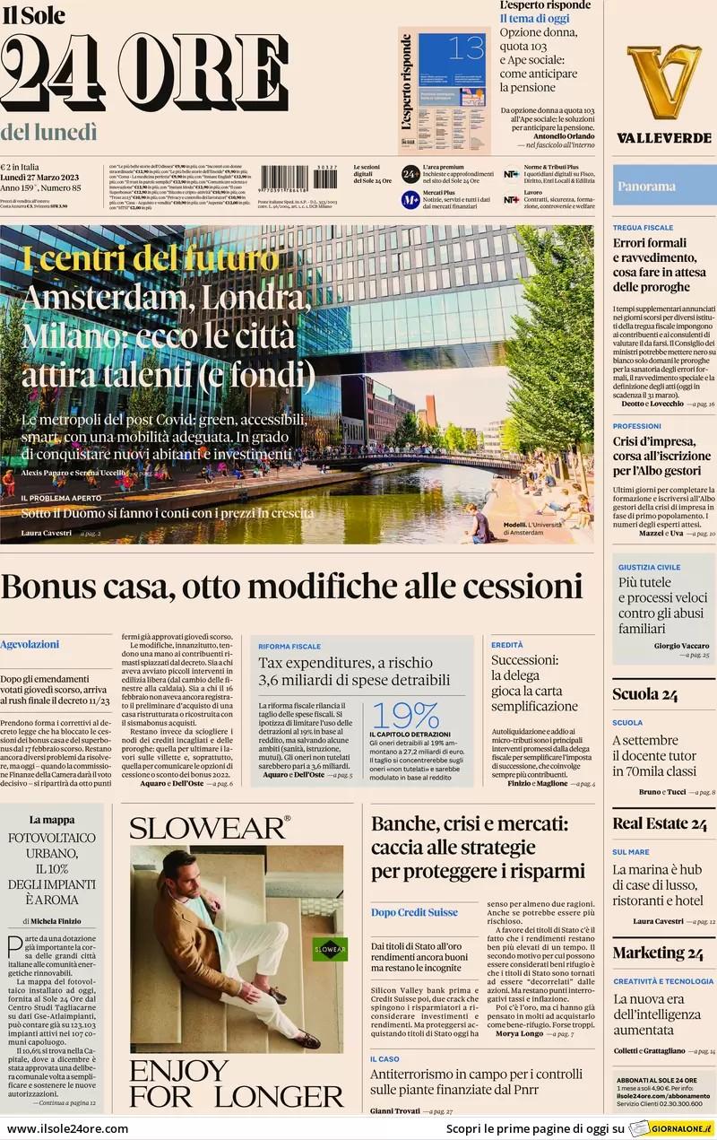 Quotidiani economici lunedì 27 marzo 2023