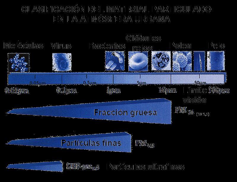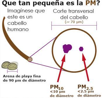 Los aerosoles que forman la mezcla del PM tienen diferentes tamaños asociados a su modo de formación o emisión. Se utilizan el diámetro aerodinámico de las partículas como una medida del tamaño de estas