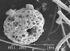 Partícula derivada de la combustión en una Central Térmica observada mediante microscopíaelectrónica(10µm)