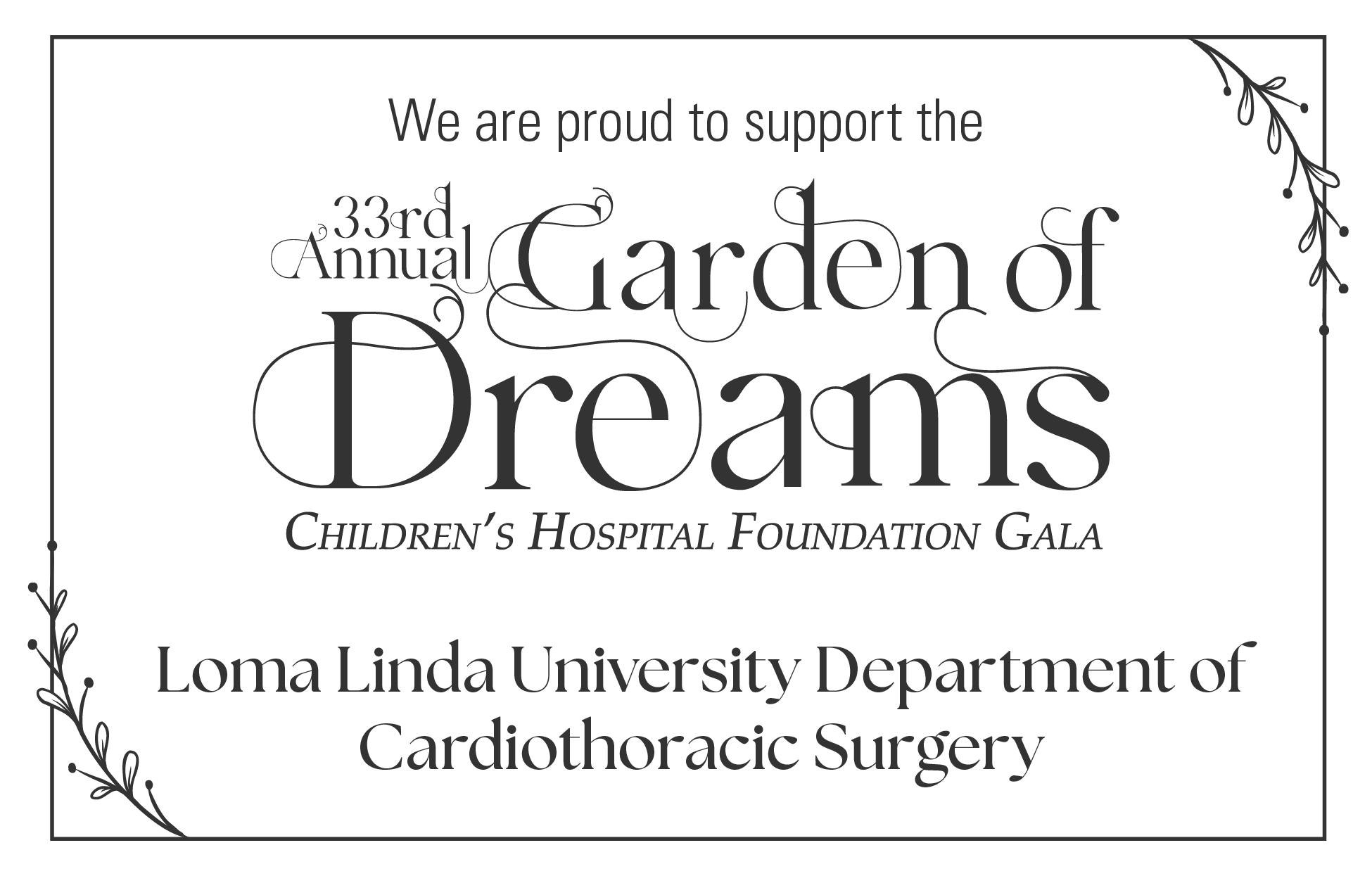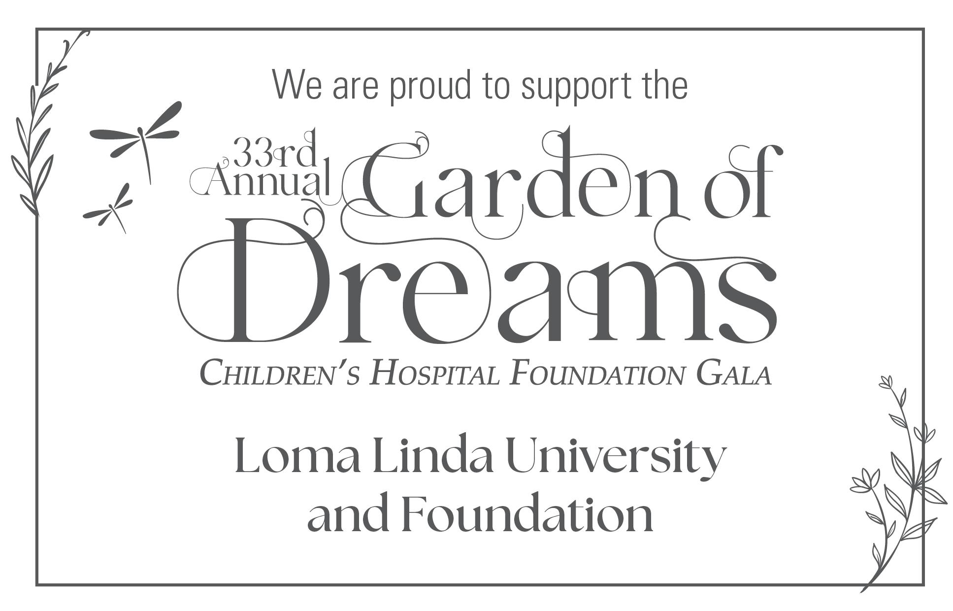 Welcome to the 33rd Annual Foundation Gala, Garden of Dreams, benefiting Loma Linda University Children’s Hospital.