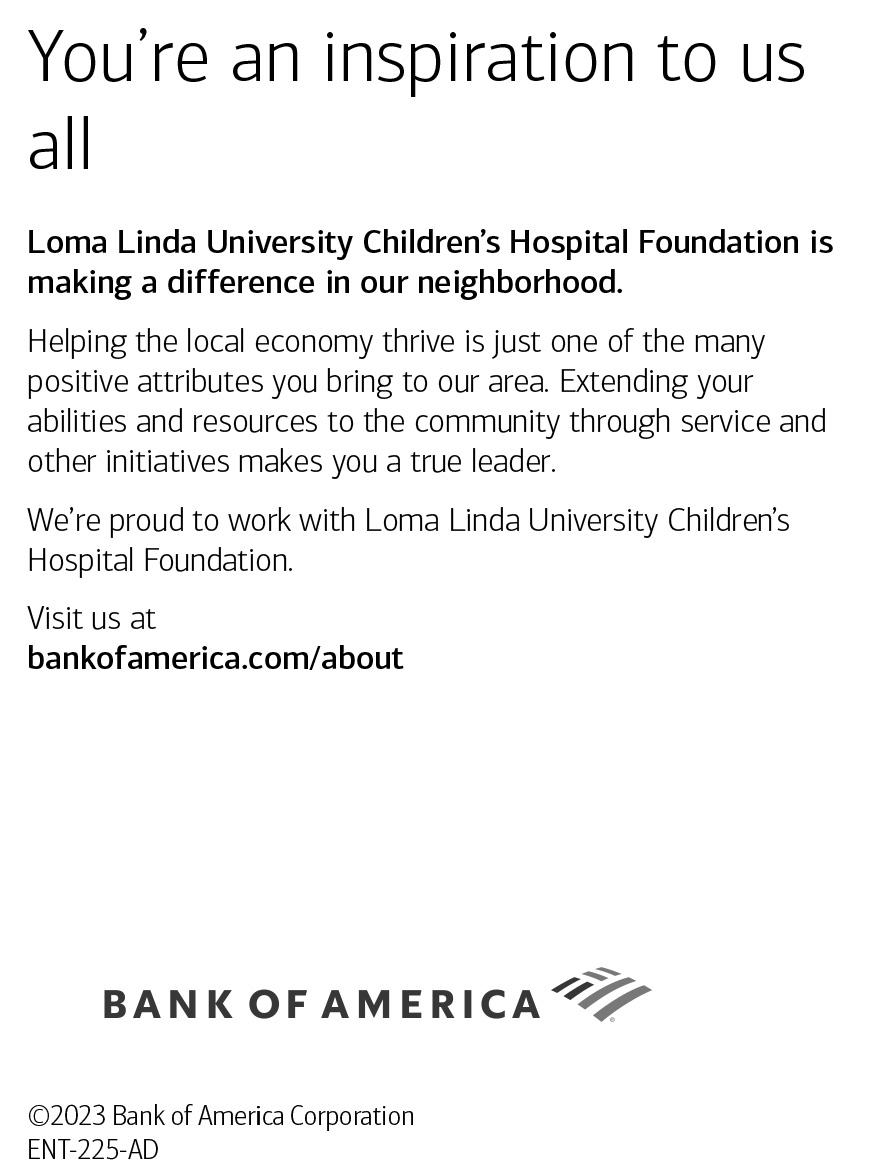 Proud to support Loma Linda University Children’s Hospital