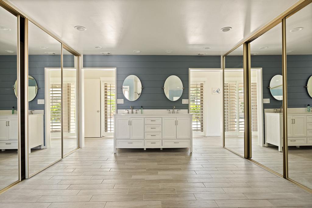Mid-Century Modern with open beam ceilings, large windows, crown molding, hardwood floors and extensive cabinetry throughout. The Gourmet kitchen has an 8 burner Kucht range, double ovens, marble counters and huge island. Four bedrooms, three baths, updated in grand style. The backyard pool area takes full advantage of the fabulous views. Gated with three car garage. Call me, I would love to show you!