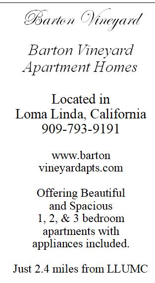 Advertising accepted for publication is intended to be a service to students, staff, employees, and faculty of Loma Linda University Health. The management, at its sole discretion, reserves the right to refuse, without explanation, any advertisement, as well as make any edits or deletions to the submitted advertisement.