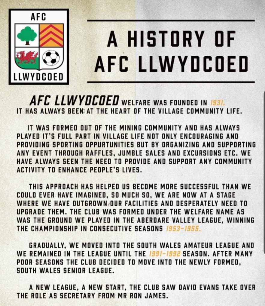 BIG THANK YOU TO ABERDARE TOWN FOR ALLOWING US TO HIRE THEY FACILITIES.