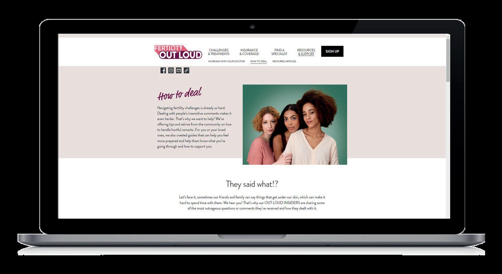 • Collaborations with several patient influencers willing to be ‘out loud’ about their infertility experience, guiding their audiences to resources provided by the platform.