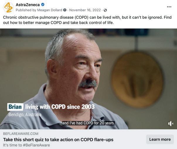 All content and materials purposely elevated the campaign’s simple and singular call-to-action: to initiate a conversation with their HCP on how to better manage their COPD as part of their overall health and wellbeing. Preliminary results showed the campaign consistently outperformed pre-determined KPIs across the spectrum of its omnichannel approach. Perhaps the most promising of all is that as a direct result of engagement with the campaign, we have started to see patients signalling their desire to explore conversations about their flare-ups and schedule appointments with their HCPs – meaning that we are driving true behaviour change.