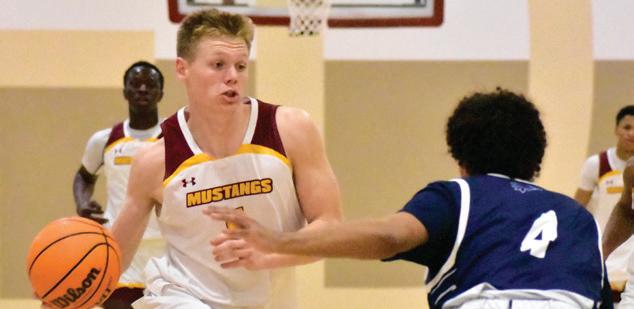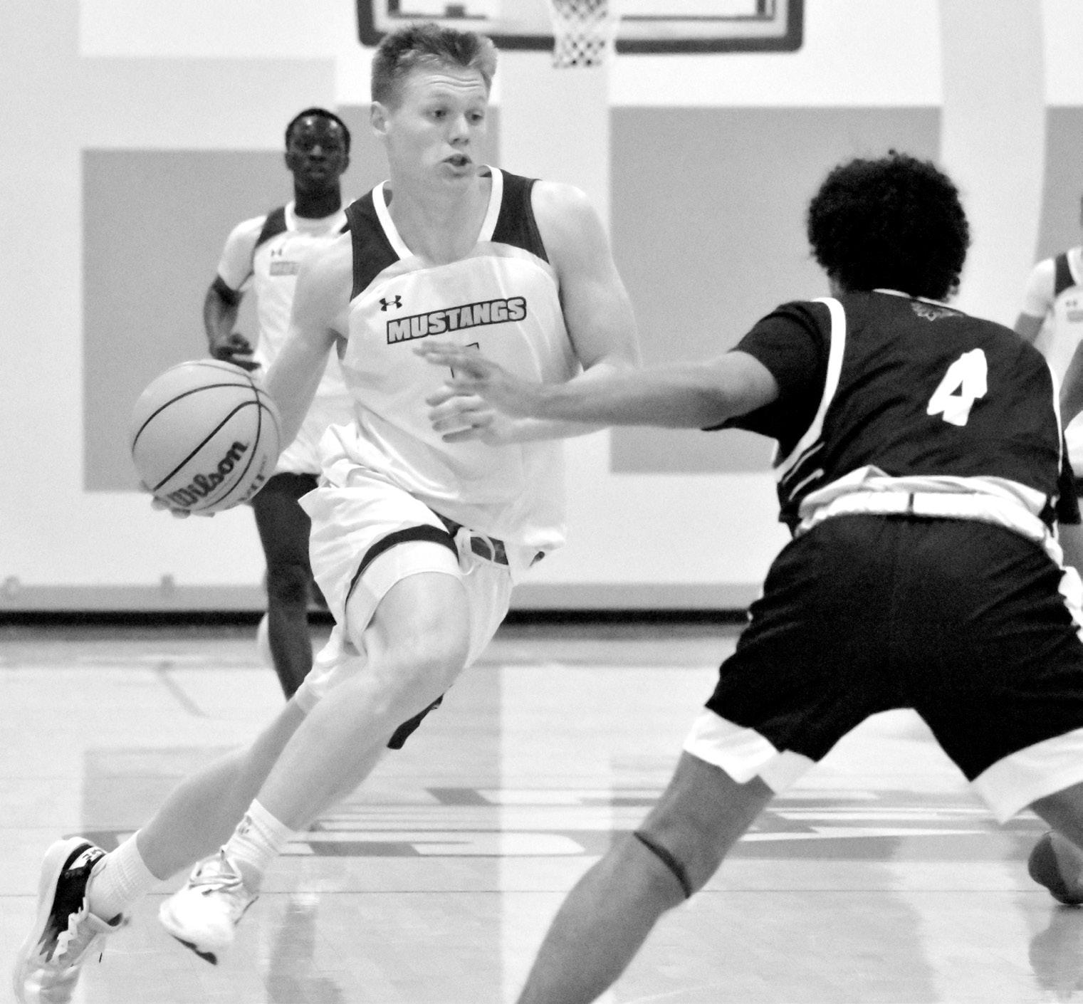 Juan Cebreiros • Experience Jason Zimmer, No. 5, dribbles the ball looking to score a basket for the Mustangs.
