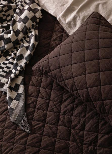 Soho Chocolate, Oatmeal, Cloud, Navy linen quilt, quilted pillowcases