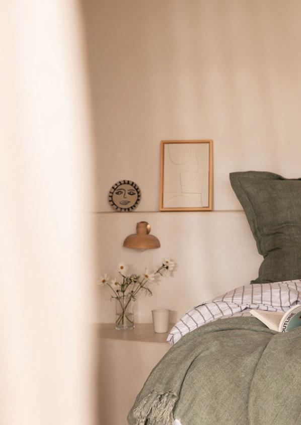 Palermo Sage, Natural linen bedcover, bedcover grand, cushions