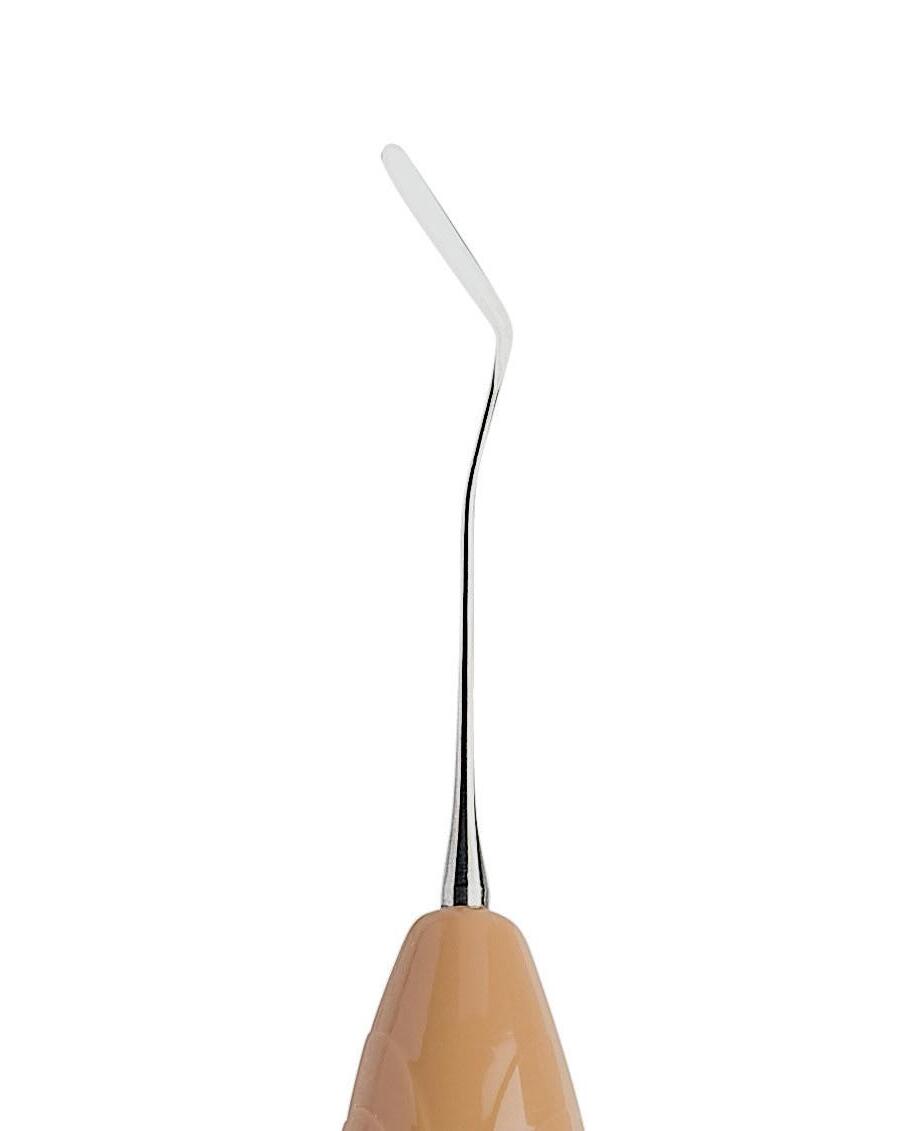 Modelovací nástroj s extrémně ostrými hroty. Kónický hrot je ideální na tvarování anatomie okluzní oblasti zadních zubů pomocí jediného nástroje. Jemný hrot ve tvaru sondy je optimální na modelování fisur a mamelonů i na vrstvení charakterizačních kompozitů a tmelů. Flexibilita nástroje