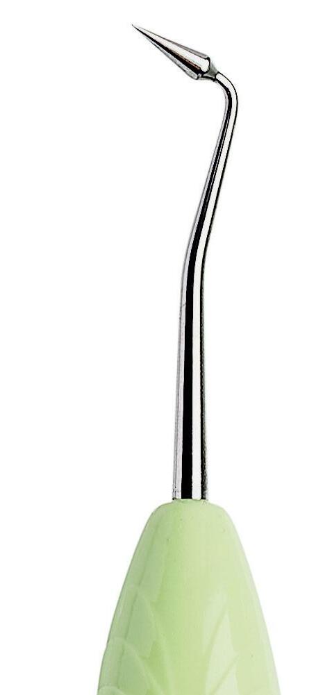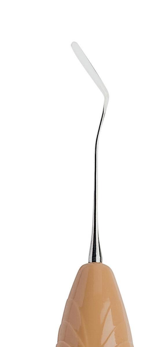 Un instrument de modelage à extrémités pointues extrêmement tranchantes. L’extrémité conique est parfaite pour sculpter l’anatomie de la zone occlusive des dents postérieures avec un seul instrument. L’extrémité fine en forme de sonde est optimale pour le modelage des fissures et des bosses arrondies ainsi que pour la stratification des composites et des résines de scellement. La flexibilité de l’instrument Fissura permet un sondage délicat afin de vérifier l’absence d’excédent de résine de fixation sur les surfaces dentaires.