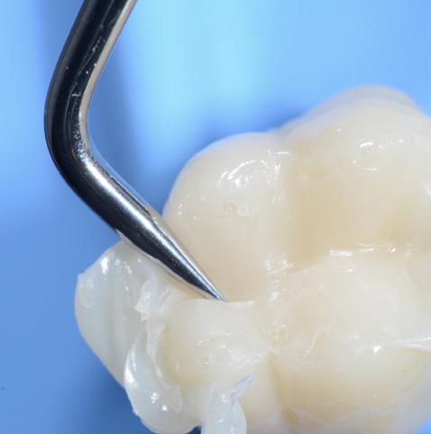 Uno strumento unico per la misurazione orizzontale e verticale dello spessore degli strati del composito nei restauri anteriori. Dopo aver posizionato lo strato di dentina, prima di polimerizzare si pone l’estremità sottile a forma cilindrica a contatto con lo smalto naturale del dente. In questo modo, il composito residuo non polimerizzato che resta sotto la punta cilindrica può essere delicatamente modellato, lasciando lo spazio ottimale per lo strato di smalto in composito. La punta più spessa e corta di Misura invece va posizionata orizzontalmente sul margine della cavità preparata, in modo che il bordo della punta rimanga sullo smalto originale. Questo permette di determinare la giusta quantità di composito trasparente da applicare sulla linea di finitura. Il risultato? Un restauro estetico finale con la giusta calibrazione di masse opache e traslucide, evitando il fastidioso effetto grigio dei compositi.