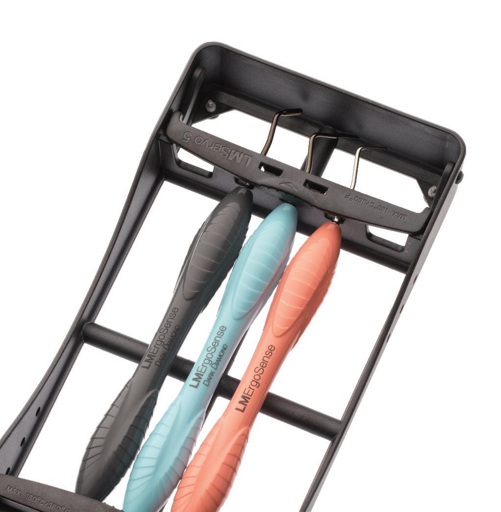 Das innovative Design ermöglicht die Formgebung von Kompositkunststoff mit minimalem Aufwand und gewährleistet eine präzise Geometrie, optimale Winkelung und Erhaltung der Zahnstruktur. Die mit LM Dark beschichteten Spitzen erleichtern die präzise und klebfreie Formung des