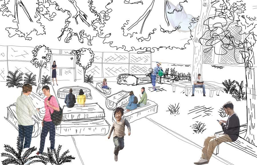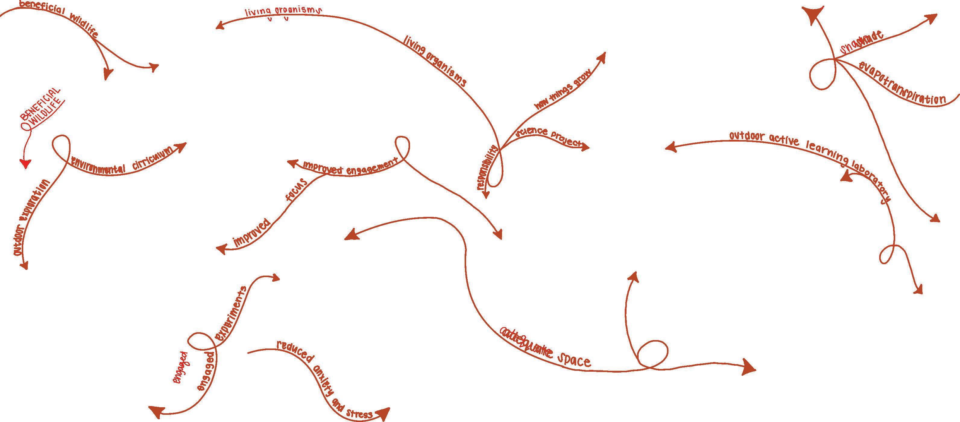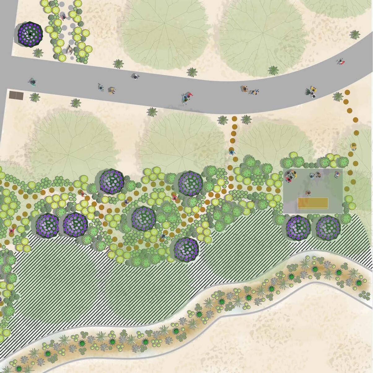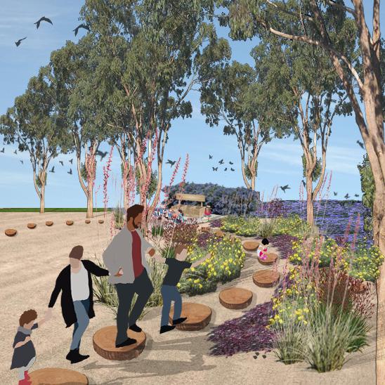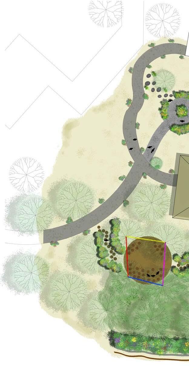 Santiago Steam MAGNET Elementary School is a school known for its meaningful and innovative learning experiences through its Project Based Learning curriculum while being located in a man made eucalyptus forest. This method uses interdisciplinary instruction which includes flexible learning environments such as learning gardens and outdoor libraries. The school aims to promote students to be innovative, conscientious, experimental, progressive, creative, and community-minded. The design proposal aims to enhance these experiences and goals through nature, culture, and circulation exploration while combating issues such as irrigation and lack of planting.