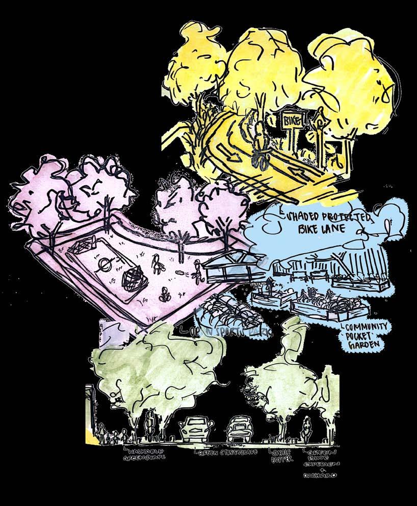 The site illustrated focuses on how porocity can effect site design. Porocity can be described as the quality of having empty space where anything can pass through. The project focuses on site design strategies that relate to porosity issues, creating connections between partners, beneficiares, and programs, and deploying modulating porosity typologies. The designated site is a neighborhood in Los Angeles, California known as Boyle Heights. Boyle Heights is full of rich history and culture. As development and population rise, the neighborhood’s significance is forgotten. This project hopes to inspire and increase awareness for the community.